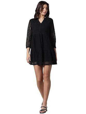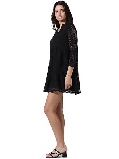 Material Care:: 63% Cotton,20% Nylon,17% Polyester, Machine Wash Fit Type:: Fit and Flare Neck Type:: V-Neck Sleeve Type:: Regular Sleeves Pattern Type:: Self Design