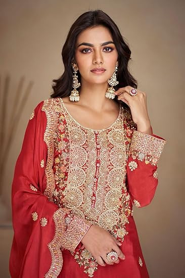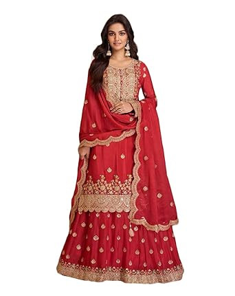 Available Sizes :- L,XL,XXL Color :- Red Top Fabric : Chinon With Santoon Inner, Dupatta Fabric : Chinon Top Length :- Calf Length Please read the Products Description below for full details of the Product. Product color might slightly vary due to photographic lighting sources or your monitor settings.