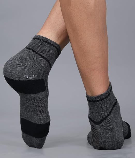 High-quality crew length socks for men, designed for ultimate comfort and durability. Made from a blend of premium materials, providing a soft and cozy feel while maintaining breathability. Reinforced toe and heel areas to ensure long-lasting wear and minimize wear and tear. Cushioned sole for extra support and impact absorption, making them perfect for sports and daily activities. Moisture-wicking technology to keep feet dry and fresh all day long, reducing the risk of odors.