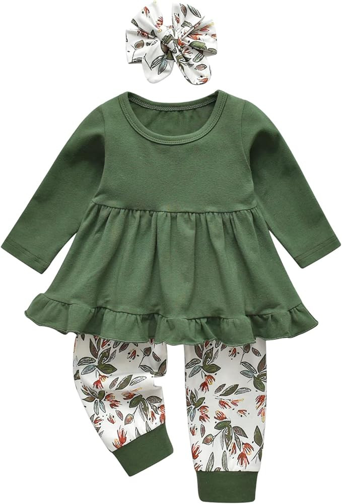 RAMUS Baby Girl Clothes Solid Color Long Sleeve Ruffle Tops Pants Headband Outfits Set.