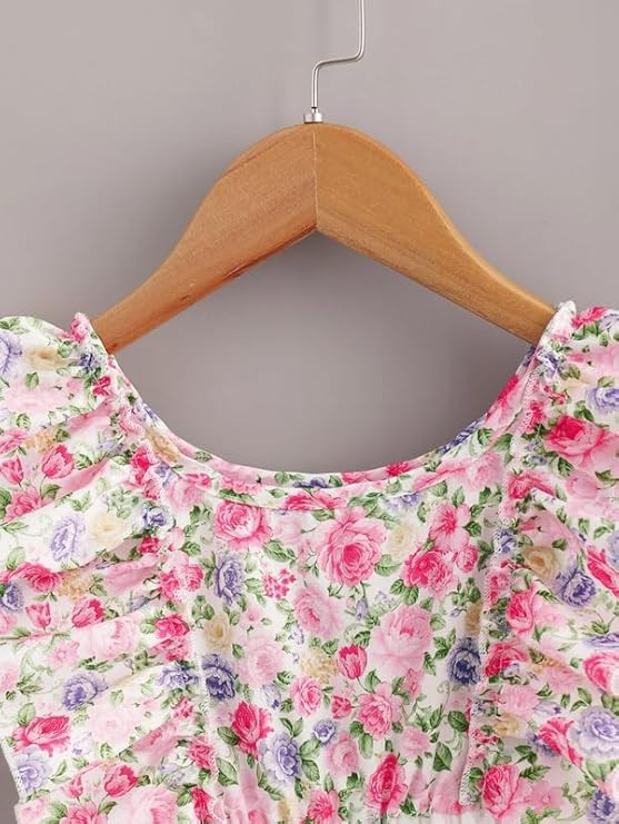 Ruffled front and back add a touch of sweetness. Machine wash cold and tumble dry low. 100% satisfaction guarantee. Perfect for everyday wear or special occasions. Maintain the vibrancy of the print even after multiple washes For 3-7 year's baby girl