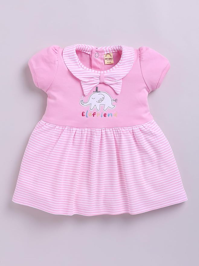 Made from 100% Cotton Soft Fabric Colourful and Trendy Prints attractive for babies. Gets more softer after a few washes. Recommended Gentle hand/machine wash. Skin Friendly fabric. No harmful chemical used. Hypoallergenic, ideal for babies delicate and sensitive skin. Girls Frock- PO1