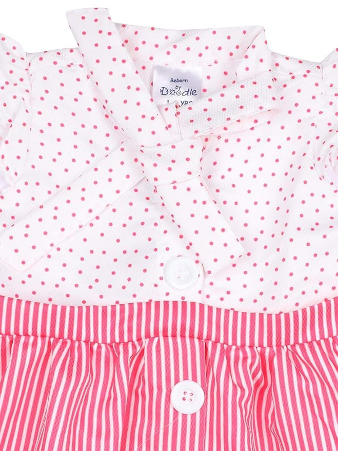 DOODLE KIDS DRESS/FROCKS: These dresses are designed to fit the needs of little girls who require comfortable and cute clothes. They are suitable for babies between six months and four years / Knee Length Frock design: The length of the frock is designed to fall just above the knee, making it practical for everyday wear and playtime activities. SOFT MATERIAL: Skin-friendly, Hypoallergenic, and Breathable Material: The frocks are made with skin-friendly, hypoallergenic, and breathable materials that will not irritate your baby's skin or cause any allergic reactions. This feature makes these dresses ideal for sensitive skin / Regular Casual Wear: These frocks can be worn as casual everyday wear, making them perfect for playtime. CAP SLEEVES WITH ROUND NECK: The frocks feature a round neck and cap sleeves, providing maximum comfort for your little girl / Front Button: The front button design makes it easy for you to dress your baby girl without any hassles. It also allows for easy diaper changes. COTTON LINING: The dresses come with a cotton lining, which makes them extra comfortable for your baby girl to wear / Fashion Trendy new arrival: These dresses are fashion-forward and trendy, ensuring that your little girl always looks stylish and chic. SIZES AVAILABLE: These frocks come in a variety of sizes, ranging from 6 MONTHS-4 YEARS, making it easy to find the perfect fit for your little one / Versatile: The Doodle Kids Dress Frocks can be dressed up or down, depending on the occasion. They are perfect for parties, weddings, and other special events.