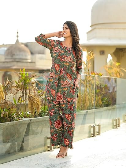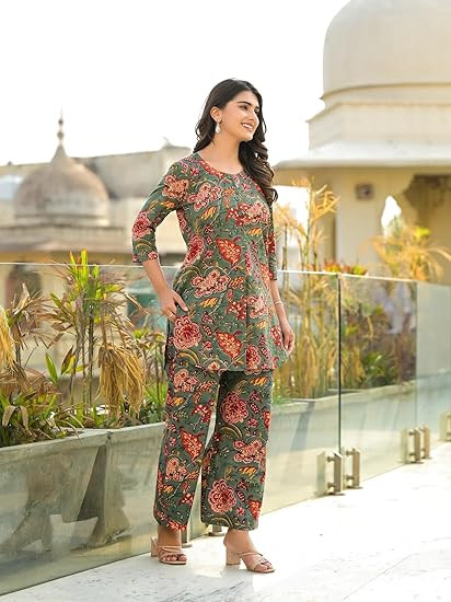 "Kurta Set Fabric: Cotton Bland " "This two piece set includes kurti, Pant "