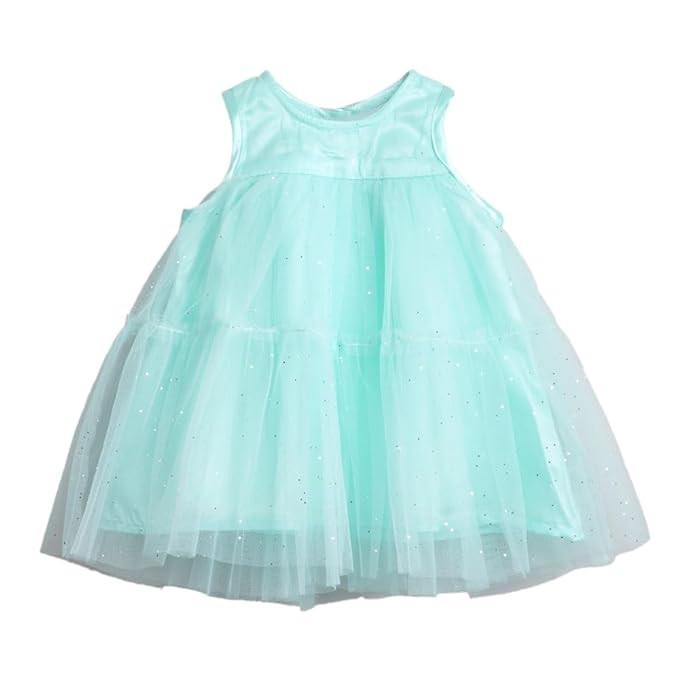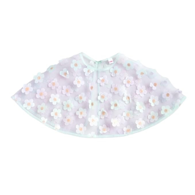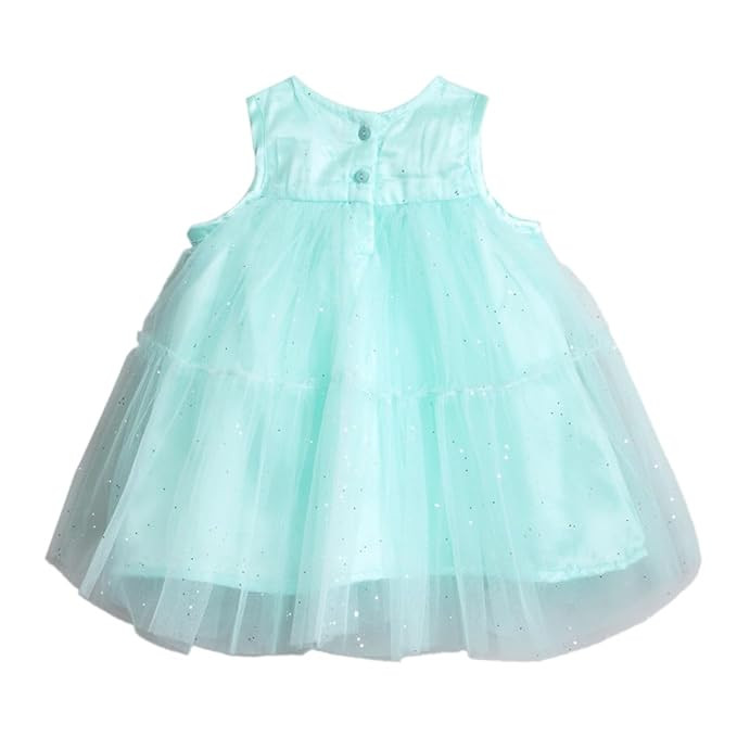 Material: 100% Polyester Package Includes: 1 Party Dress, 1 Cape Product features: Button placket and floral applique cape Dimensions: Party Dresses: Length: 88 cm , Chest: 54.6 cm The actual product may differ slightly in color from the one illustrated in the images. For 3-7 year's baby girl