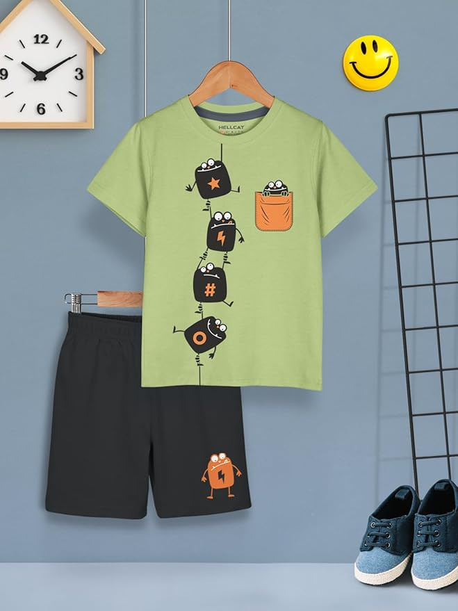 HELLCAT Boys Dress Clothing Set Combo with Tshirts & Shorts - Pack 1