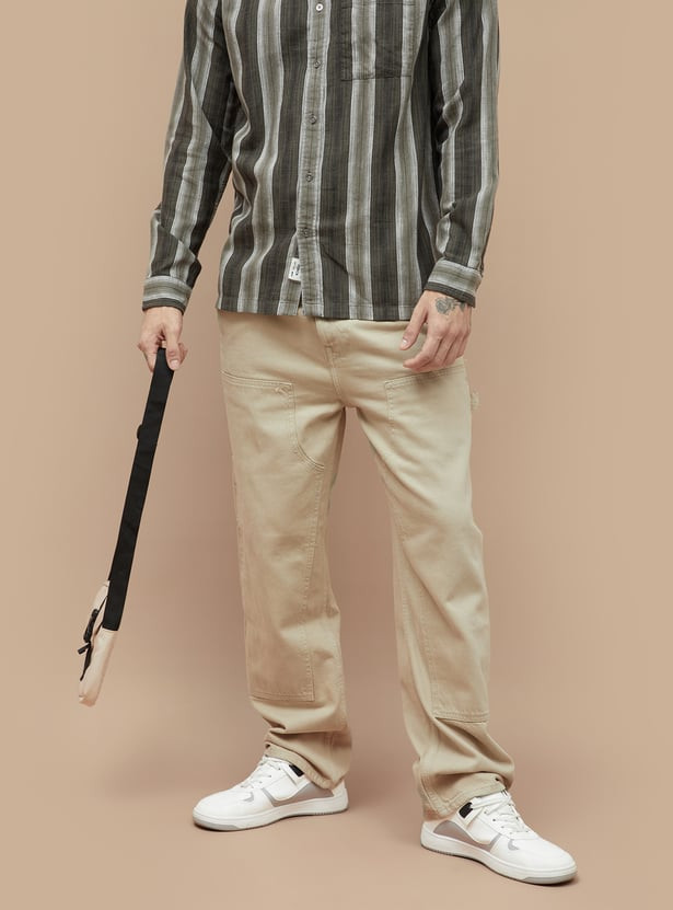 Indulge in unparalleled comfort and practicality with these game-changing jeans. The solid design, complete with a secure button closure and zipper fly, along with thoughtfully positioned belt loops, guarantees a stylish appearance. These loose fit jeans incorporate functional features like reinforced stitching, and generously sized pockets for all your essential items.
