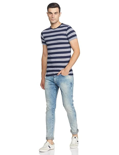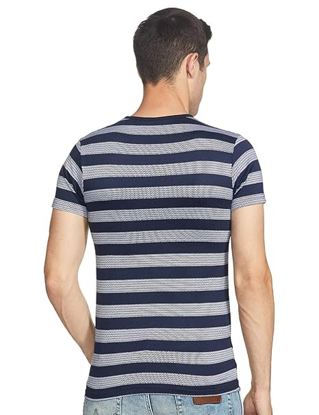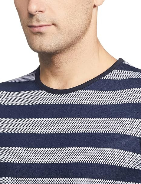Fabric: 52% Polyster & 48% Cotton Style: Casual T-Shirt Neck Style: Round Neck; Sleeves Style: Half Sleeve Pattern: Rib Neck Striped Wash Care: Machine wash or hand wash, tumble dry low, dry in shade