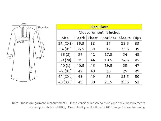 Kurta only Cotton blend fabric 34 (XS) to 42 (XL)