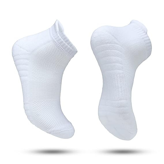 【Material Composition】:Unisex Athletic Running Sports Socks Material Composition: 80% Cotton+17% Nylon+3% Spandex 【High Quality】: Made of high quality combed cotton.High quality material makes athletic socks so breathable,comfortable to wear all day without irritating your feet skin. Ultra Air-Permeability and moisture wicking performance keeps your feet dry and odor free throughout the whole day 【Special Design of Running Socks】:The hand-lined seamless toe ensures protection against yarn chaffing and irritation caused by traditional toe seams. reinforced heel and toe for durability. High heel tab and extra deep heel pocket prevent socks from slipping down, enhanced Elastane provides additional no-slip security. 【Men's and Women's&Four Seasons】:Unisex sports socks are not too thick or too thin, warm in winter and breathable in summer. Professionally customized for all sports, mountain climbing, hiking, jogging, running, tennis, marathon, golf, cycling all sports. simple style socks fit any everyday dressing for adults and teenagers. 【Package Includes】: 3 Pair of Socks, Color - White