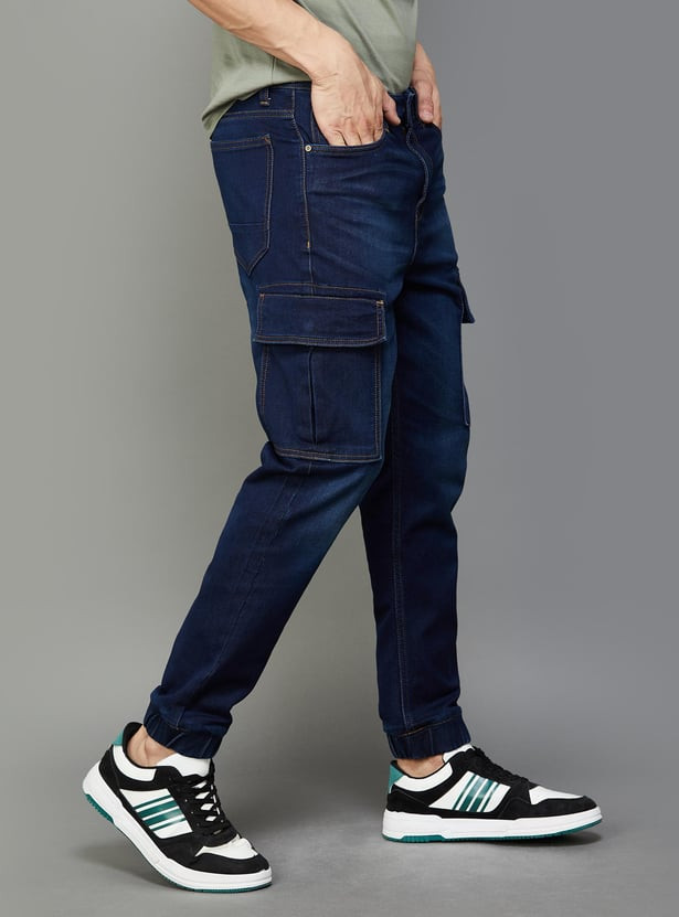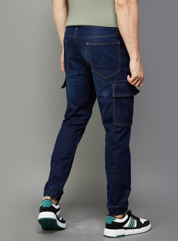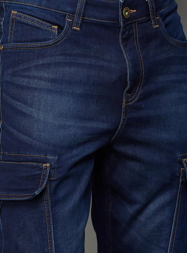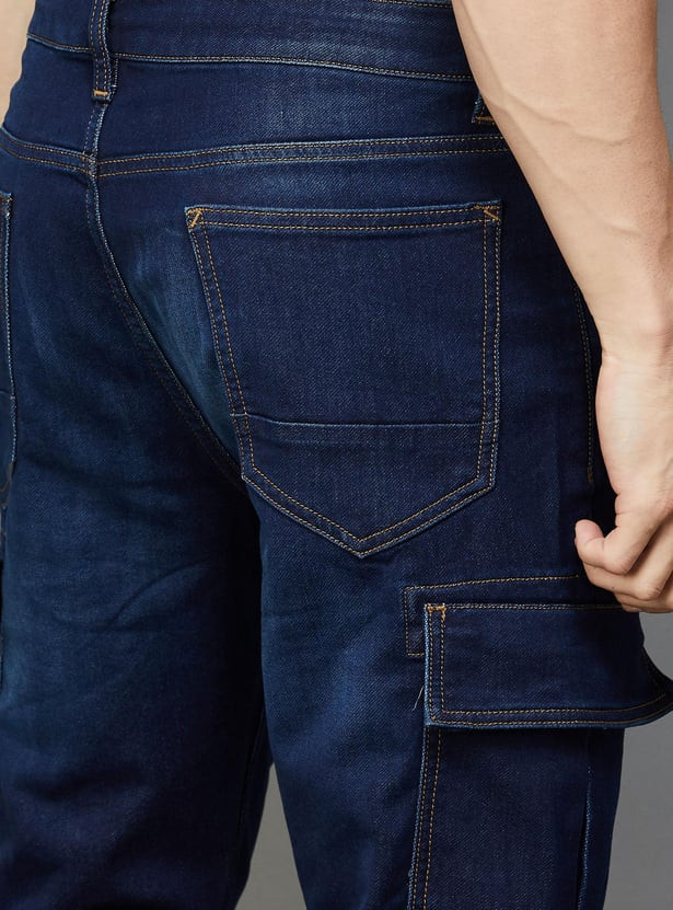 BOSSINI Men Stonewashed Regular Fit Cargo Jeans