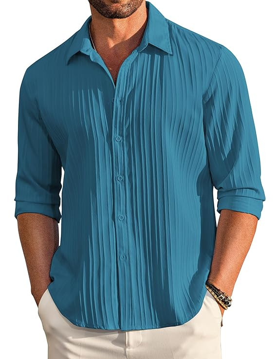 【Unique Design】Mens casual shirts feature long sleeve,spread collar, solid color,slight vertical ribbing,relaxed fit,simple and fashion 【Various Outfits】Men linen shirts could be easy to match with linen shorts/pants, casual pants or shorts to create a simple but fashionable style. 【Occasions】Mens untucked shirts is a great choice for beach, wedding, vacation, cruises, tropical aloha theme, party, yoga, work or daily casual wear.Perfect great for all seasons, Just enjoy your vacation. 【Garment Care】: Machine washable