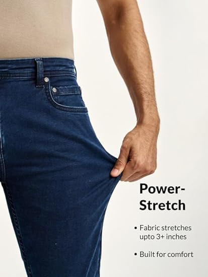 FABRIC: Premium export quality men's smart casual two way stretch jeans. 80% cotton, 17% polyester & 3% Elastane provides 3 inches of fabric stretch. Machine and hand washable. Available in blue/navy and black colour styles.
