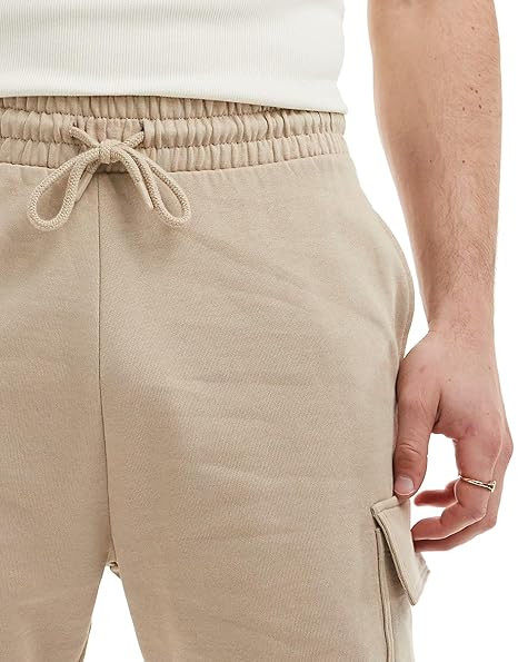 Elasticated waistband and matching rope 2 side pockets and 2 cargo pockets Knee Length Soft Cotton Fleece Blend