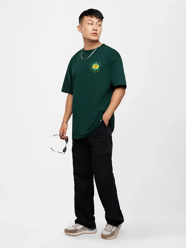 T-Shirt Unisex Drop Shoulder Dye Washed Street Look Black Pack of 1