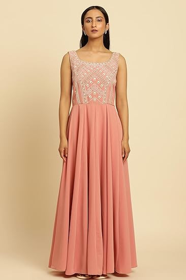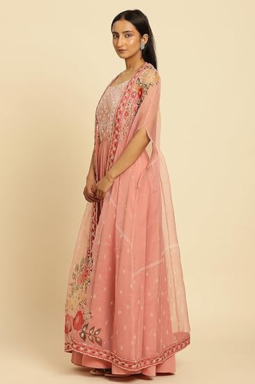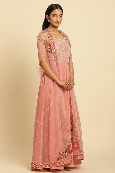 Fabric: Organza || Fabric Composition: 100% Man Made Fiber || Color: Pink Style: Flared || Length: Ankle Length || Sleeve: 3/4 Sleeve Package Content: 1 Cape & 1 Dress || Pattern: Solid || Neck Style: Shawl Collar Occassion: Festive wear, Please click on brand name "W for Woman" for more products.