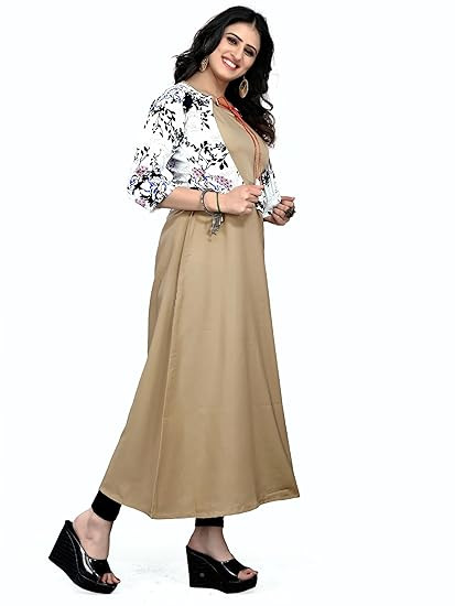 Material compositionCrepe Sleeve typeThree Quarter LengthKnee Length Neck styleRound Neck PatternPrinted StyleStraight
