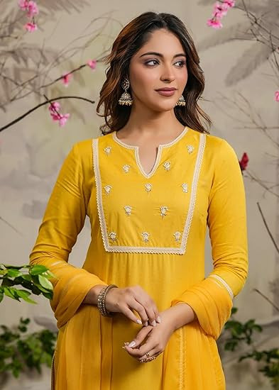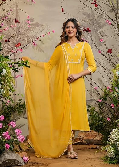 kurta set for women | Women Kurta | Kurta Set with Embroidery work and Lace | Women Kurta Pant Set With Dupatta