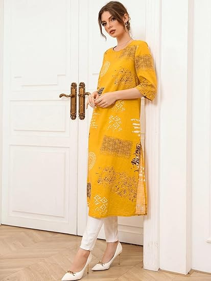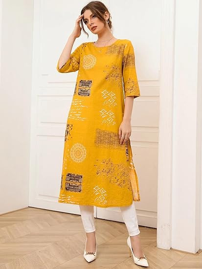 Elegant Straight-Cut Design – Flattering silhouette with 3/4 sleeves and side slits for easy movement and a chic look. Versatile Styling – Pairs effortlessly with leggings, jeans, or palazzos for a complete ethnic or Indo-western ensemble.