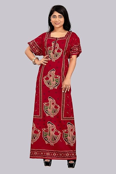 ►Material- Soft and Fine Quality Cotton fabric. ► Trendy, fashionable, and cool nighty with a soft and fine cotton material for a cozy and comfy feel. ► Floral print with smooth and silky touch, plus attractive lace/neck work on it to add style. ► Relaxed fit for comfort and ease of movement.