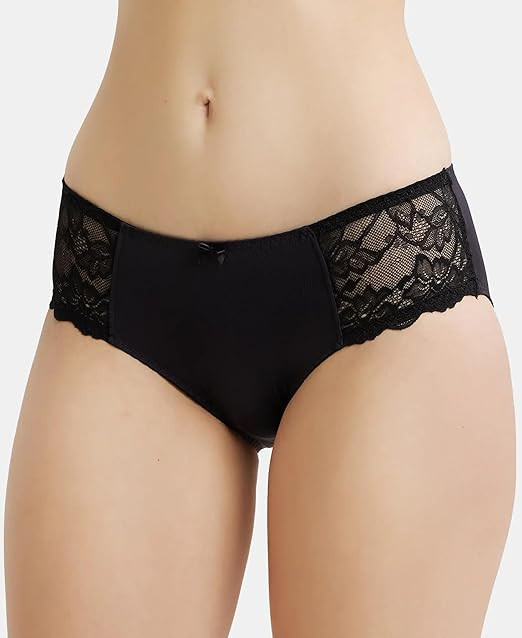 Women's Full Coverage Soft Touch Microfiber Elastane Stretch Hipster with Lace Styling and StayFresh Treatment