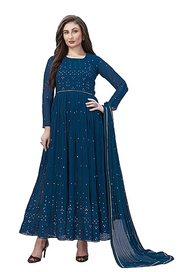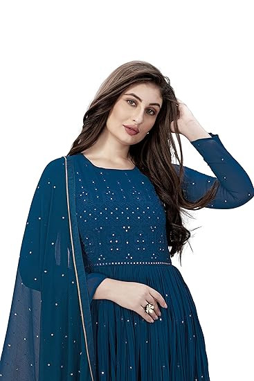 Suit Fabric: Anarkali Kurta: Georgette || Salwar; Inner: Santoon || Dupatta: Nazneen Color: Kurta Salwar Dupatta: Morpeach Style: Anarkali Suit/ Gown || Sleeve: Full Sleeve || Work Type: Floral Embroidery work Length: Kurta: 57 In; Sleeve : 20 In; Flared width: 3.2 Mt || Salwar: 42 In || Dupatta: 2.25 Mt Stitched Type: Ready to Wear Stitched Salwar Suit Set || Package Contents: 1 Kurta Salwar Dupatta