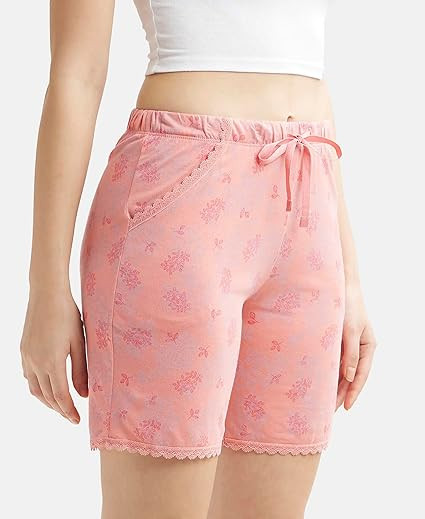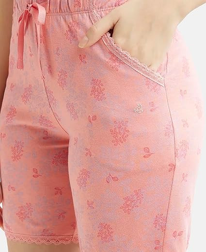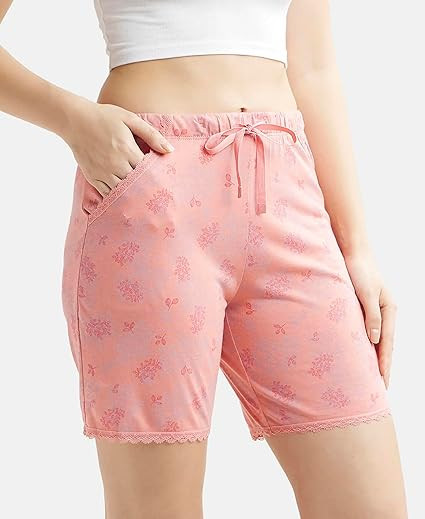 Women's Micro Modal Cotton Relaxed Fit Printed Shorts with Lace Trim Styled Side Pockets (Prints May Vary)