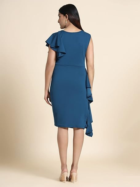 Colour : Blue Ruffle Sleeve|| Dress Inner : N/A Pattern : Knitted || Neck : Round Neck Suitable for Party or Evening Wear.