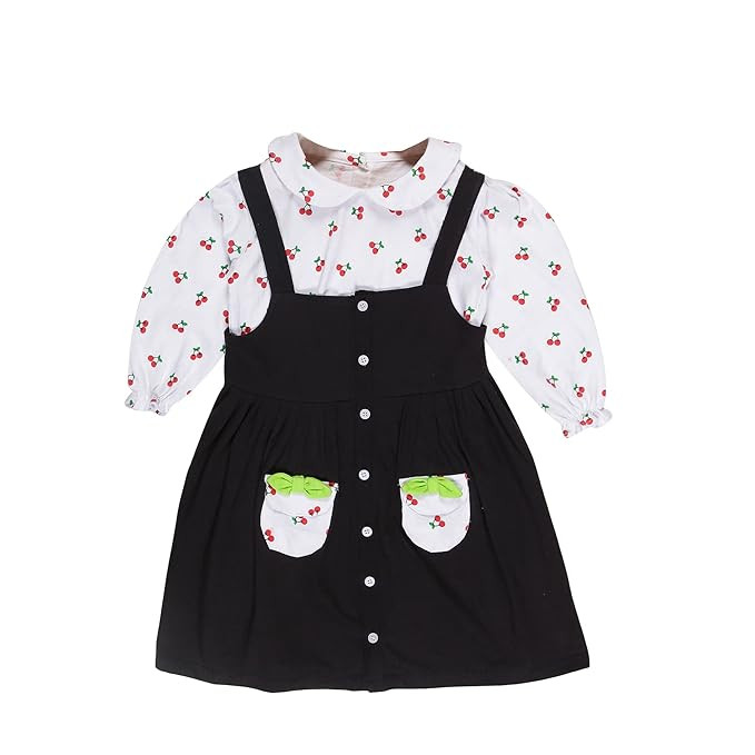 babeezworld Baby Girl Cotton Dress - Full Sleeves Knee Length fit and Flare Dungaree Frock jhabla Regular fit top Tshirt