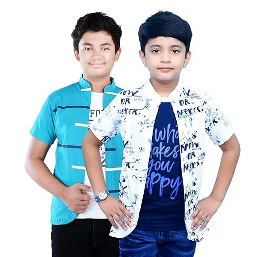 Boys Cotton Printed T-Shirt with Attached Shrug Jacket - Full Sleeves