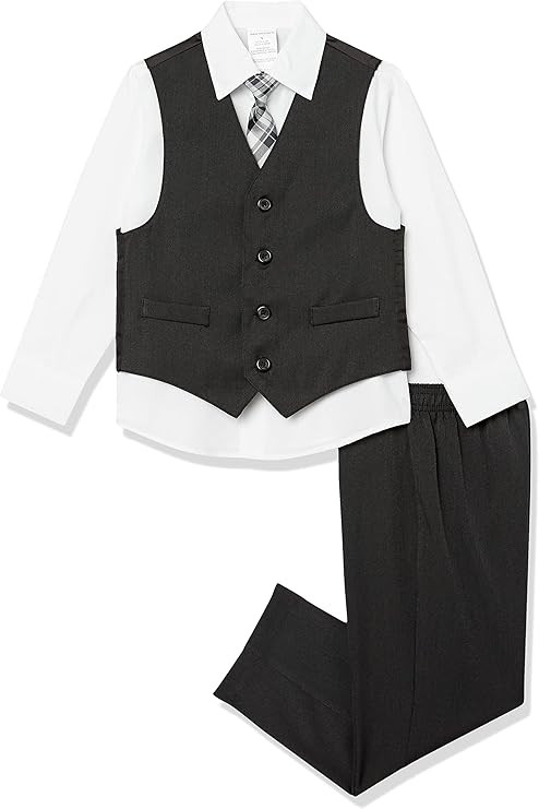 BUMZEE Beige & Navy Boys Full Sleeves Shirt Waistcoat & Pant Set With Applique Bow
