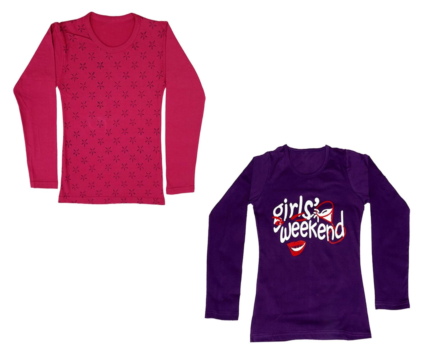 Girls Cotton Full Sleeve Printed T-Shirts(Purple,Magenta,17-18Years) Pack of 2