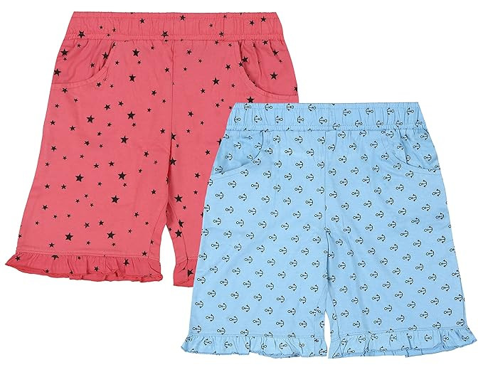 QWER Girls Printed Cotton Shorts Pack of 2 |